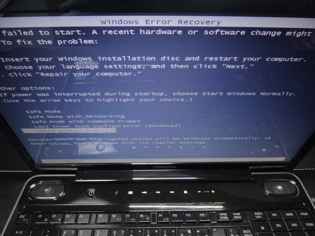 dynabook TX/67KBL(PATX67KRFBL)を、HDDからとメディアからと両方の方法で、何度かリカバリしても失敗し、dynabookの画面が出た後、Windows Error Recoveryの画面になってしまい、正常な起動をしません。修理をお願いできるでしょうか。