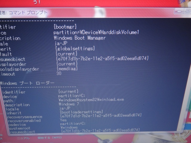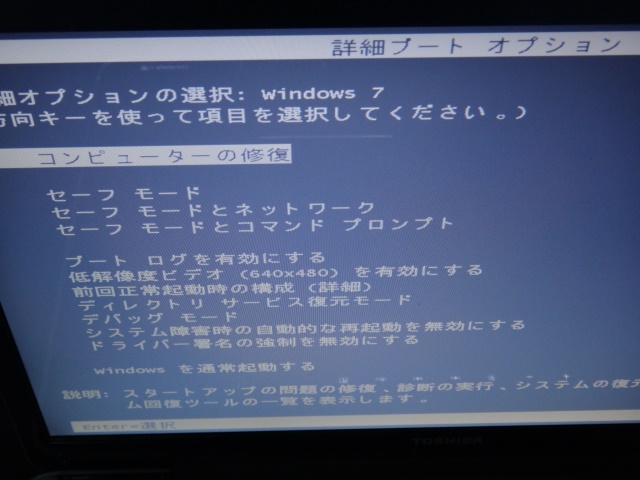パソコン到着後、起動してみると、確かにエラー画面が出ます。なぜか全て英語になってしまっていますね。